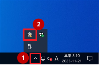 작업표시줄 우측의 숨겨진 아이콘 표시 클릭 후 ‘N’모양의 아이콘 더블클릭